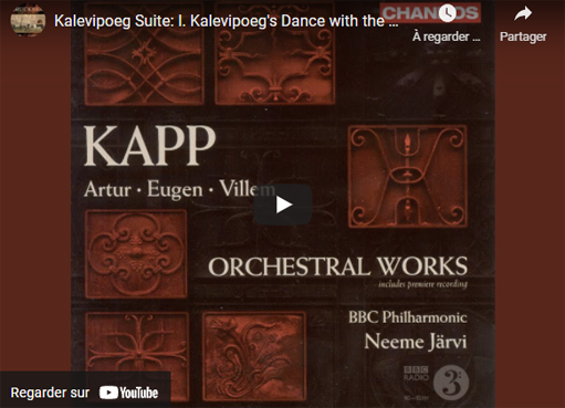 Le Kalevipoeg est l‘épopée nationale estonienne, finalement compilée par Friedrich Reinhold Kreutzwald (1803-1882); Eugen Kapp en tirera également une Suite.
