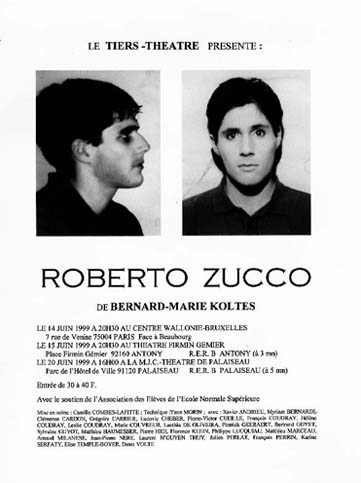 Dans Combat de nègres et de chiens de Bernard-Marie Koltès, on a un noir venant en Afrique réclamer le corps de son frère mort à un blanc dirigeant un chantier, avec une histoire d’amour où une femme blanche se scarifie pour ressembler à l’homme noir qu’elle aime ; dans Roberto Zucco du même auteur, un tueur en série est en quête d’identité.