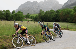 Céline Rousseaux et Nicolas Geay sont au départ puis dans la zone protocole pour interviewer les vainqueurs d’étape et les porteurs de maillots à la descente du podium.