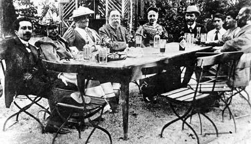 A Zurich au moment du congrès : Ferdinand Simon, Frieda Simon (née Bebel), Clara Zetkine, Friedrich Engels, Julie Bebel, August Bebel, Ernsct Schattner, Regina Bernstein, Eduard Bernstein
