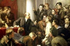 Les sous-fifres et les parasites de la bourgeoisie ont dépeint le socialisme sous les espèces d’une caserne grise, uniforme, austère et monotone. Les laquais du sac d’écus, les valets des exploiteurs – messieurs les intellectuels bourgeois – ont fait du socialisme un « épouvantail » pour le peuple qui, précisément en régime capitaliste, est condamné à une vie de bagne et de caserne, à un travail écrasant et abrutissant, à la sous-alimentation, à une misère noire. Pour délivrer les travailleurs de ce bagne, il faut avant tout confisquer les domaines des grands propriétaires fonciers, instituer le contrôle ouvrier, nationaliser les banques. Ensuite, on devra nationaliser les fabriques et les usines, organiser obligatoirement toute la population dans les sociétés de consommation qui sont en même temps des sociétés pour l’écoulement des produits, établir le monopole d’Etat sur le commerce du blé et autres articles indispensables.