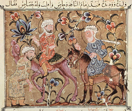 Une représentation du 14e siècle, le premier a volé le chameau au second, qui a lui-même volé un cheval