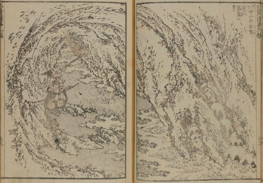 On notera d’ailleurs que Hokusai parvient justement à trouver une voie, toute particulière, toute japonaise, dans ce conflit dialectique entre la quantité et la qualité. Le niveau synthétique est époustouflant.