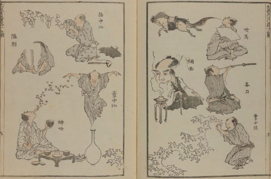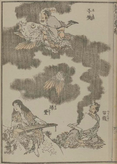 Dans le Hokusai manga, on trouve des figures qui sont plus particulièrement soulignées. Il s’agit de personnages historiques, de divinités. Leur présentation est sérieuse ou posée de manières propres à elles, mais dans tous les cas il y a une insistance sur une dimension personnelle. Il y a ici quelque chose qui mérite d’être souligné par conséquent, car la bourgeoisie émergente affirme, par définition, les traits personnels assumés, à rebours de l’effacement de ceux-ci dans une société patriarcale-féodale.