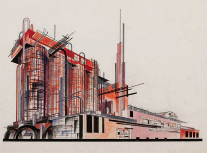 Iakov Tchernikhov est justement ici emblématique du constructivisme architectural et de ses prétentions à la radicalité ultra, à ceci près que lui s’est toujours cantonné dans une démarche purement théorique, même s’il a réalisé quelques projets secondaires. Lui-même était professeur et tout au long des années 1930-1940, il a réalisé des dessins à la dimension fantastique, mais particulièrement inspirante, à côté de nombreux ouvrages.