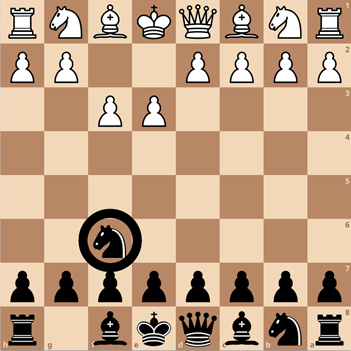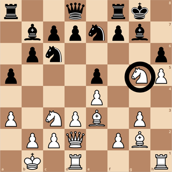 Ici, le cheval est placé de telle manière à se sacrifier. C’est une perte à court terme, un déséquilibre en termes de pièces essentielles par rapport à l’adversaire, mais l’idée est de déstructurer toute la défense au moyen de cette action. Si le cheval est effectivement pris, les noirs se retrouvent dans une posture catastrophique plusieurs coups après, leur défense étant désorganisée.