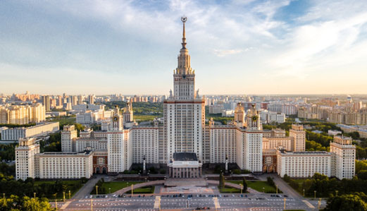 On a le bâtiment principal de l’Université Lomonossov, commencé en 1949 et fini en 1953, faisant 240 mètres de haut avec 36 étages, avec l’emploi de 40 000 tonnes d’acier. Cela resta le bâtiment le plus haut d’Europe jusqu’en 1990.