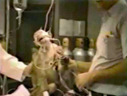 Extrait d’une vidéo de 1984 montée par l’association PeTA sur la base des enregistrements des chercheurs eux-mêmes de l’université de Pennsylvanie, dérobés par un raid de l’ALF.