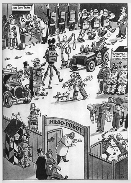 Caricature anti-cybernétique soviétique de 1952, dans la revue Technologie Jeunesse