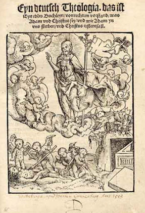 Cela nous amène directement à Martin Luther, car celui-ci fit publier un document de la mouvance de ces « amis de Dieu ». Cet écrit, anonyme et manuscrit, fut partiellement publié en 1516 et entièrement en 1518, Martin Luther lui donnant le titre d’Eyn deutsch Theologia, une théologie allemande.