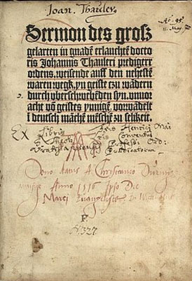 Immédiatement après Eckhart, on trouve ainsi Johannes Tauler (1300 ? – 1361) dont l’importance fut capitale et dont le rôle fut déterminant pour Martin Luther, ainsi que pour Thomas Müntzer.