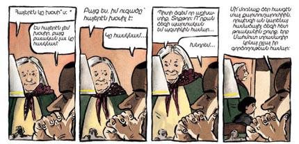 Forcément, l’attitude de Marie n’est pas celle du chirurgien dans la bande déssinée. Lui est d’une autre génération, il était beaucoup plus jeune lors du génocide. Et justement, il n’en a pas réellement de souvenir. Mais pour autant, le traumatisme est bel et bien ancré en lui : par exemple, il comprend très bien l’arménien, mais il est incapable de le parler, malgré ses nombreuses tentatives.