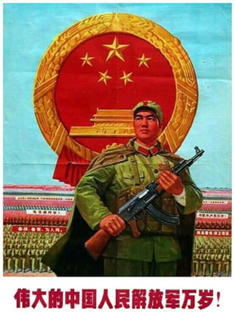 L’Armée populaire de Libération de Chine est une armée d’ouvriers et de paysans créée et dirigée par le Parti et le président Mao Zedong ; elle est le principal rempart de la dictature du prolétariat et le défenseur du socialisme. Nous devons surveiller étroitement nos ennemis en armes et être prêts à tout moment à briser les assauts armés de l’impérialisme américain et de ses laquais.