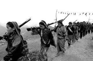 13 février 1996 : le Parti Communiste du Népal (Maoïste) lance la Guerre Populaire. Il est présent avec des comités dans 35 des 75 districts du pays, disposant de trois types d’organisation : les Radak Dal c’est-à-dire les escouades de combat, les Gaun Surakcha Dal c’est-à-dire les groupes villageois de défense, et le Swayamsewaka Dal, le groupe de volontaires. Au départ, les armes consistent en un fusil à munition 303 British, des pistolets artisanaux et des couteaux népalais appelés Khukhuris. 6000 actions sont menées en quinze jours, appartenant à quatre types : propagande, sabotage, actions de guérilla, exécutions d’ennemis de classe.