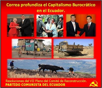 Nous résistons et luttons contre le gouvernement de Correa qui approfondit chaque fois plus le capitalisme bureaucratique qui crée un régime fasciste avec les politiques anti-populaires et corporatistes dans les masses ; qui déclenche la répression contre le peuple et les révolutionnaires ; qui trompent les masses paysannes avec une fausse et intense campagne de propagande disant qu’il va y avoir répartition des terres, quand en réalité, par son caractère de classe, Correa est un défenseur de l’État bourgeois – propriétaire terrien et ne portera pas préjudice à ses intérêts et ceux de ses proches.