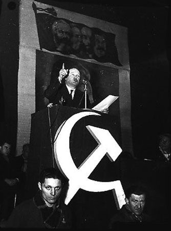 En agissant ainsi, les trotskistes ne faisaient ils pas le jeu du fascisme qui avait intérêt à ce que le désordre s’installe dans le pays et à ce que la classe ouvrière soit isolée de ses alliés naturels ? Lorsque nos frères d’Espagne sont obligés de prendre les armes pour défendre leur liberté, leur République, contre le fascisme, les trotskistes ne trouvent rien moins que déclarer que le Front populaire est incapable de battre le fascisme, que la classe ouvrière doit se séparer des classes moyennes pour faire la révolution prolétarienne en Espagne.