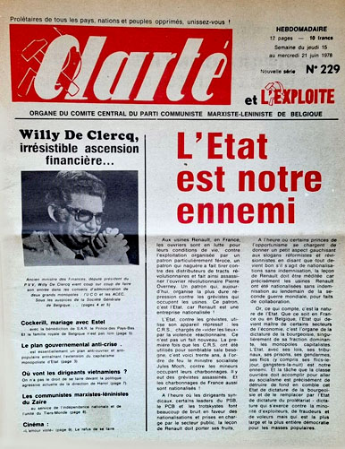« Notre pays sera occupé par le social-impérialisme » (Libelle anti-parti diffusé le 4 mars 1978, page 14) ; « La classe ouvrière de Belgique sera confrontée avec une agression fasciste qui conduira à un régime d’occupation étrangère et de terreur fasciste » (Programme pour la Paix, l’indépendance Nationale, la Démocratie et le Socialisme, p. 59).
