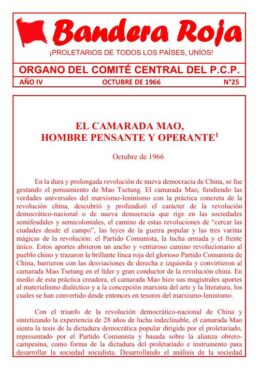 Dans sa lutte pour démasquer et écraser le révisionnisme contemporain, le camarade Mao, comme Lénine dans son époque, a détruit idéologiquement le révisionnisme khrouchtcheviste cramponné à la direction du PCUS, démontrant que les khrouchtchevistes avec ou sans Khrouchtchev ont trahi et abandonné les principes du marxisme-léninisme et démasquant sa collusion avec l’impérialisme nord-américain pour le partage du monde, il a analysé les causes internes et externes du khrouchtchevisme et nous enseigne les formes pour le combattre, et comment de la lutte contre ce révisionnisme, le marxisme sortira fortifié idéologiquement, les partis communistes plus fermes et la lutte révolutionnaire aura une impulsion et une force idéologique et politique plus grande: et que, comme ses prédécesseurs, le révisionnisme khrouchtcheviste est condamné à la déroute et le marxisme-léninisme à réussir un nouveau et grand développement.