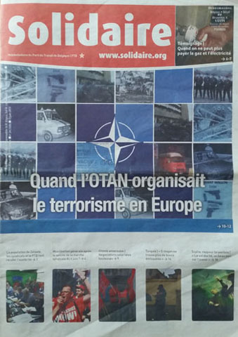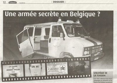 Tranchant sur le flot d’articles lénifiants et insignifiants de son hebdomadaire, PTB a publié un dossier particulièrement nauséabond intitulé « Quand l’OTAN organisait le terrorisme en Europe »1. Cet article est en fait une nouvelle attaque contre l’expérience des CCC dont le logo se retrouve sur le montage de couverture à côté des photos des massacres des tueurs du Brabant…