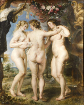 Une peinture comme Les trois grâces, datant vers 1635, est caractéristique du style demandé à l’époque, avec cet improbable mélange d’austérité catholique immensément ostentatoire en fait et cet hédonisme des aristocrates se masquant esthétiquement derrière l’Antiquité gréco-romaine.