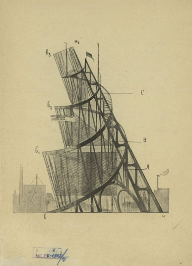 Le projet délirant de monument à la 3e Internationale de Tatline, imaginé en 1919-1920, signifiait par exemple une tour de 400 mètres de haut avec trois éléments en forme de double hélice en rotation permanente, un écran géant, des projections de texte sur les nuages, etc.