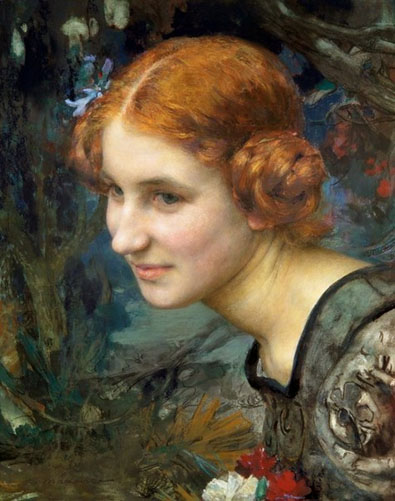 Autre peintre proche de Joséphin Peladan, Edgard Maxence (1871-1954) oscille entre esthétisme néo-catholique et esthétique préraphaélite.