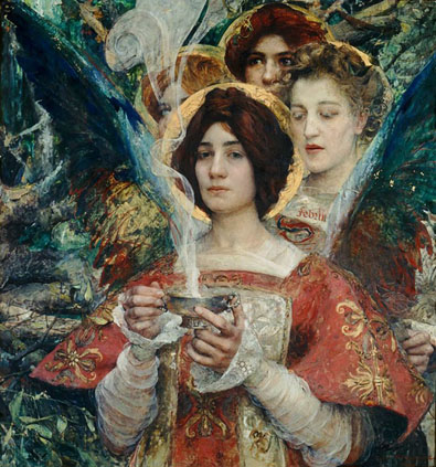 Alphonse Osbert (1857-1939) fut également proche de Joséphin Peladan, exposant à son salon, et obtenant une très grande reconnaissance sociale, avec des commandes publiques. On atteint ici le comble de la kitscherie ne prenant vraiment plus le mysticisme que comme prétexte à une ambiance absolument neutre, voire nulle, sans aucune contradictions, répondant parfaitement aux besoins de la bourgeoisie française de la belle époque, cherchant à nier la réalité et ses contradictions justement.
