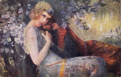 Ami de Gustave Moreau, le peintre Gaston Bussière (1862-1928) était par exemple très proche de Joséphin Peladan, exposant au salon Rose-Croix. Sa peinture est une sorte de caricature de la peinture russe et finlandaise, ou bien de germanisme à la Richard Wagner ou encore d’orientalisme, avec cette particularité française d’un faible niveau technique et d’une mise en valeur des femmes dans un esprit érotique propre au romantisme noir, prolongement de l’influence massive des Fleurs du Mal de Charles Baudelaire.