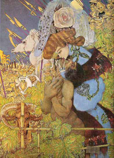 Le décadentisme – symbolisme en peinture a en France très vite sombré dans le kitsch, ou bien dans la posture esthétisante belle époque. Une fois cette dernière période clairement terminée, par la terrible rupture de la première guerre mondiale impérialiste, le subjectivisme ne pouvait se prolonger qu’en faisant l’acquisition d’un nouveau justificatif : ce sera le surréalisme, qui posséde clairement la même base que le décadentisme – symbolisme.