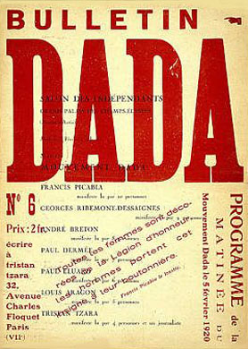Le Cabaret a duré 6 mois, chaque soir on enfonça le triton du grotesque du dieu du beau dans chaque spectateur, et le vent ne fut pas doux – secoua tant de consciences – le tumulte et l’avalanche solaire – la vitalité et le coin silencieux près de la sagesse ou de la folie – qui pourrait en préciser les frontières? – lentement s’en allèrent les jeunes-filles et l’amertume plaça son nid dans le ventre du père de famille. Un mot fut né, on ne sait pas comment Dadadada on jura amitié sur la nouvelle transmutation, qui ne signifie rien, et fut la plus formidable protestation, la plus intense affirmation armée du salut liberté juron masse combat vitesse prière tranquilité guérilla privée négation et chocolat du désespéré. »