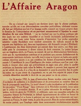 « Les communistes ne pensent qu’à la littérature de propagande. Or, l’activité poétique, telle que la conçoit le surréalisme, ne peut subir un contrôle de ce genre ; Baudelaire, Rimbaud, Lautréamont, Apollinaire ont créé une sorte de déterminisme de la poésie qui rend impossible le souci de propagande. »