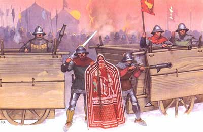 Du côté populaire-révolutionnaire, les restes du mouvement hussite se plièrent à la nouvelle situation ; la ville de Tabor remplaça le calice par l’aigle noir à deux têtes, emblème de l’empereur germanique redevenant souverain de Bohême.