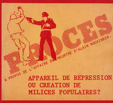 Suite au meurtre par la police d’Alain Ruckineer, sont ici « revendiquées », entre autres loufoqueries, la dissolution de la gendarmerie et le désarmement de la police ; la création de clubs sportifs gratuit où la population peut s’entraîner physiquement ; le remplacement de l’armée de métier par une armée de miliciens recevant une formation militaire et l’organisation de milices populaires : le tout, bien entendu, dans le cadre du système capitaliste !