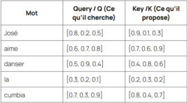 Maintenant on va vers les éléments de la phrase, en prenant pour deux mots leurs Q et K.