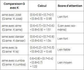 Avec eux, on obtient V, soit un score qui va déterminer le « poids » pour le mécanisme d’attention. L’intelligence artificielle va accorder plus d’importance à certains rapports en fonction de ce poids.