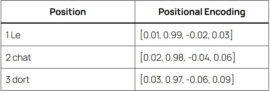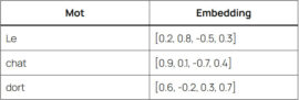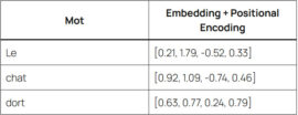 Prenons ici un exemple, avec la phrase « Le chat dort ». Imaginons qu’on ait eu un embedding de quatre dimensions.