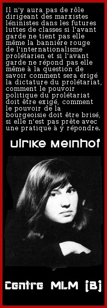 C’est de là que nous venons de la prostitution de la bourgeoisie, de l’emprisonnement dans l’éducation bourgeoise et l’éducation prolétaire, jusqu’à ce que nous ayons compris la détresse de chacun de nous, comme la nécessité de nous libérer de l’impérialisme, comme étant la nécessité de mener la lutte anti-impérialiste.