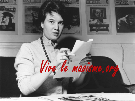 Voici ce qu’on répète systématiquement à la population : l’Amérique défend la liberté de l’Occident au Vietnam. L’Amérique fournit à ses alliés la preuve convaincante de son engagement et elle le fait dans de dures conditions. Nous devrions lui en être reconnaissants et nous en émouvoir. Aujourd’hui le Vietnam. Demain l’Allemagne peut-être. Mensonges ! Tout ce que l’on peut prouver, c’est que les gens qui sont censés gober ces histoires, de même que la presse qui les leur fait croire et les politiciens qui renchérissent, ont tous un rôle à jouer dans cette guerre. Ce rôle est clair, et on peut le décrire – mais il n’est que très indirectement lié à la question de la sécurité allemande. Les cent millions de marks que Bonn a envoyés au Vietnam et les cloches de la paix1 organisées par la presse à Berlin n’ont rien à voir avec le Vietnam, mais tout à voir avec la politique allemande.
