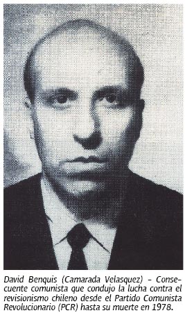 La principale contribution de David Benquis à la lutte pour la libération de la classe ouvrière et du peuple chilien fut d’avoir été l’un des fondateurs et le principal dirigeant d’un parti authentiquement marxiste-léniniste, pleinement basé sur la pensée de Mao Zedong : le Parti Communiste Révolutionnaire (PCR).