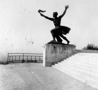 Le personnage féminin de 14 mètres qui surplombe le groupe a ceci de très intéressant qu’il présente une certaine rigidité, rendue nécessaire par sa hauteur et son prolongement du long socle-piédestal. La figure culmine ainsi à 40 mètres de hauteur.