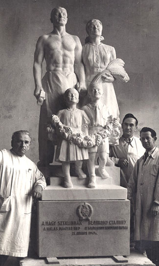 Le peuple hongrois reconnaissant à Staline est magistrale et historique, parce qu’elle est une expression du passage à la monumentalité sans monument, de par l’intensité accordée au rapport dialectique entre le réalisme et la densité matérielle propre à la sculpture.