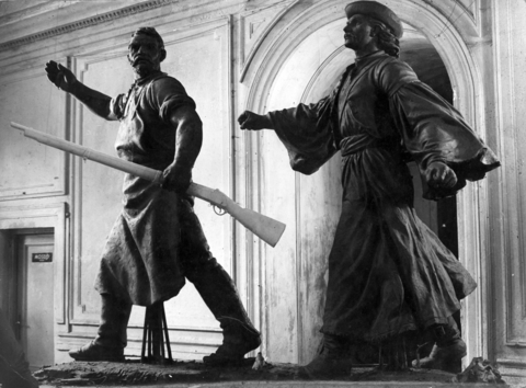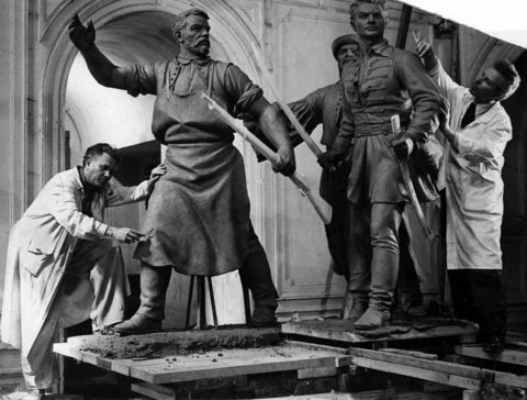 Cette oeuvre de 1952 fait de Lajos Kossuth (qui fait ici cinq mètres de haut) comme symbole national, avec sur les côtés, façonné par des aides (András Kocsis et Lajos Ungvári), une paysanne avec un enfant, un paysan, un soldat, un ouvrier (avec un fusil), un étudiant (avec une épée), un jeune (avec un pistolet).