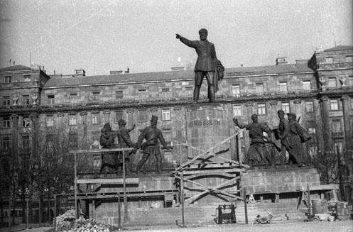 La place Lajos Kossuth de Budapest, du nom de la grande figure patriotique – républicaine de 1848, n’accueille plus le monument réalisé dans l’immédiate après-guerre de Zsigmond Kisfaludi Strobl. Celui-ci fut déplacé et remplacé par une copie d’une oeuvre existant après 1945.