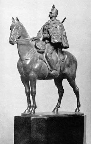 Le hussard équestre, de 1928 (et faisant 24 cm), montre comment l’élan et l’élégance vont de pair, chez Zsigmond Kisfaludi Strobl, avec un certain positionnement en arrêt, une sorte d’effet de retrait, très prononcé ici chez le hussard mais également présent de manière marquée chez le cheval.